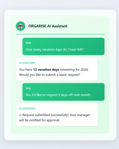 💡 Use CaseAn employee messages the assistant: "How many vacation days do I have left?"